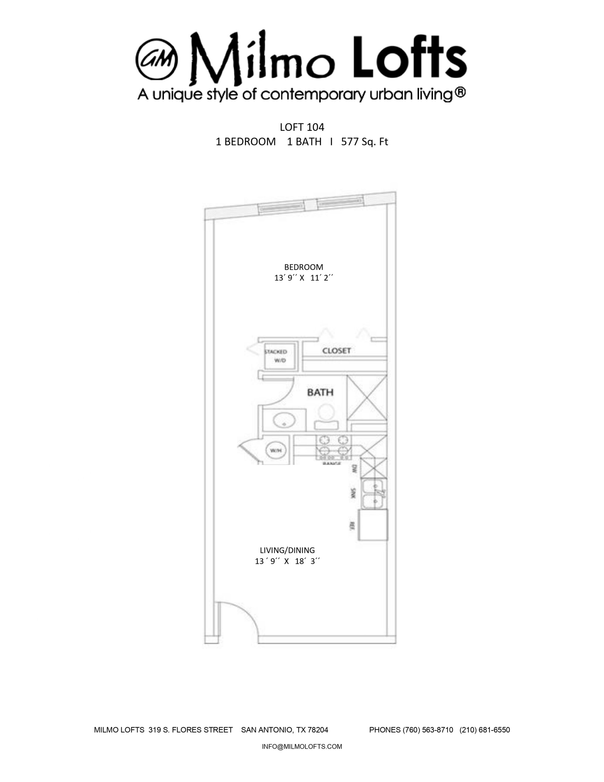 VIEW ALL 1 BEDROOM 2 BEDROOM Loft 104 Sqft 577 Rent $1080 Bed/Bath 1/1 Stories 1 View More View Floor Plan Guided Tour